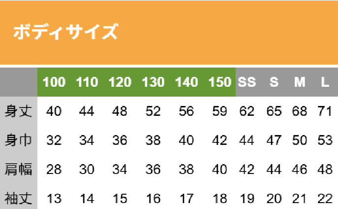 Tシャツ サイズ表