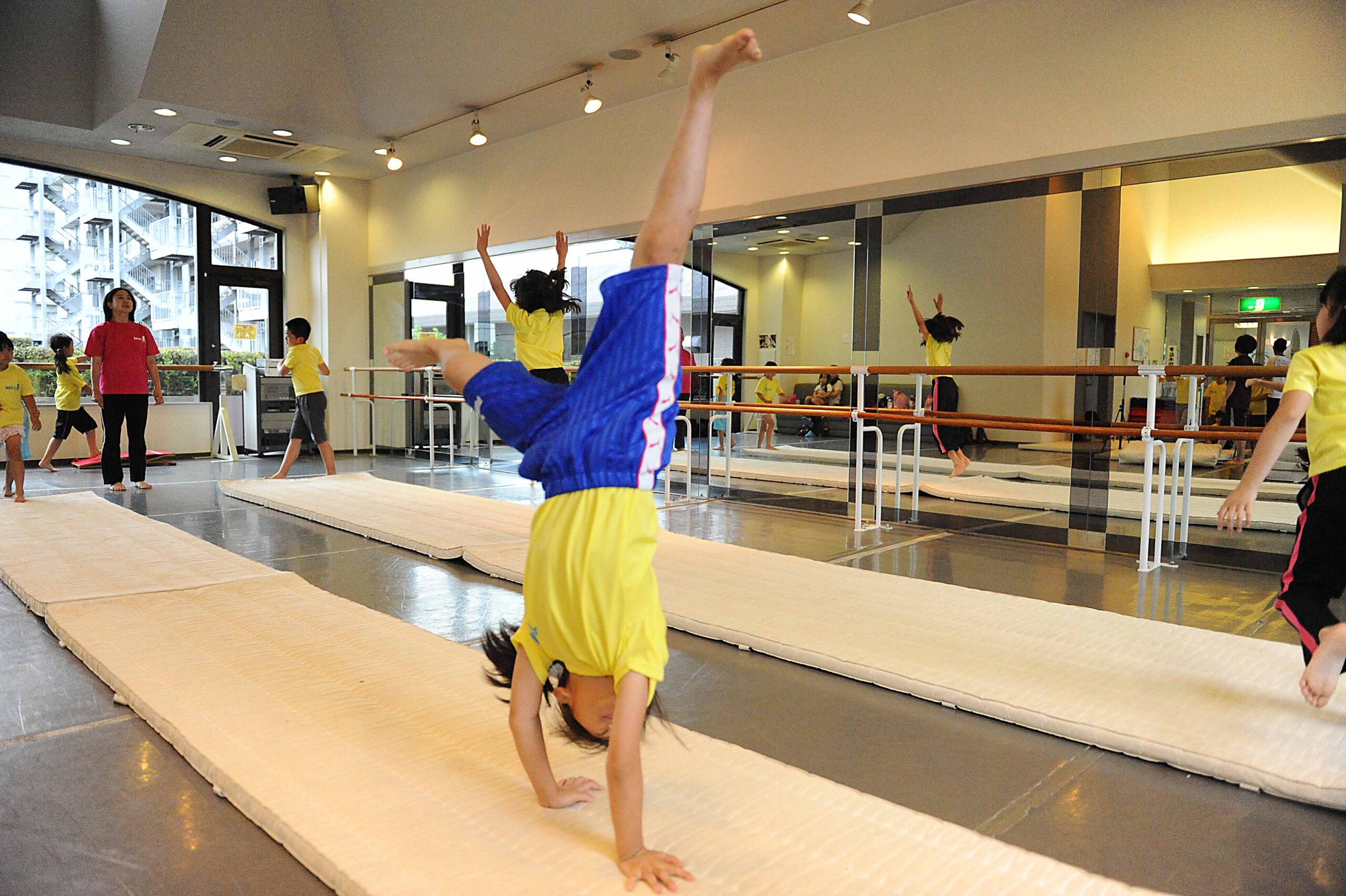 マット運動を基本に、鉄棒・跳び箱・トランポリンを練習します。運動が得意な子も苦手な子も、楽しみながら参加することができます。